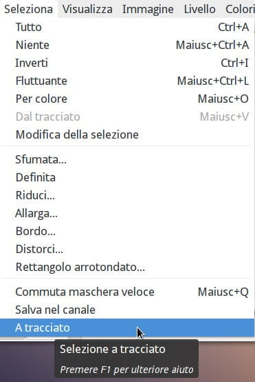 - Ora fai clic sul menu Seleziona, quindi su A tracciato:
